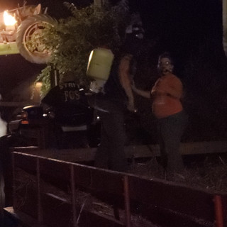 This is one of our favorite hayrides. The scenes always go above and beyond expectations and never cease to amaze us with their creativity. Without giving away too many spoilers, here’s what you can look forward to this year: The return of the blood squirt effect in the slaughterhouse, some new animatronics in the cryo scene, and an all new claw scene that you won’t want to miss towards the end of the hayride. Our only concern with this attraction is that the actors in the cryo scene and in the beheading scene weren’t loud enough and were almost totally inaudible; a microphone in those areas may help with the story telling of the scene. Our absolute highlight of this attraction was the mayhem of the big top circus which got new music this year and had some of the best acting in the whole attraction.